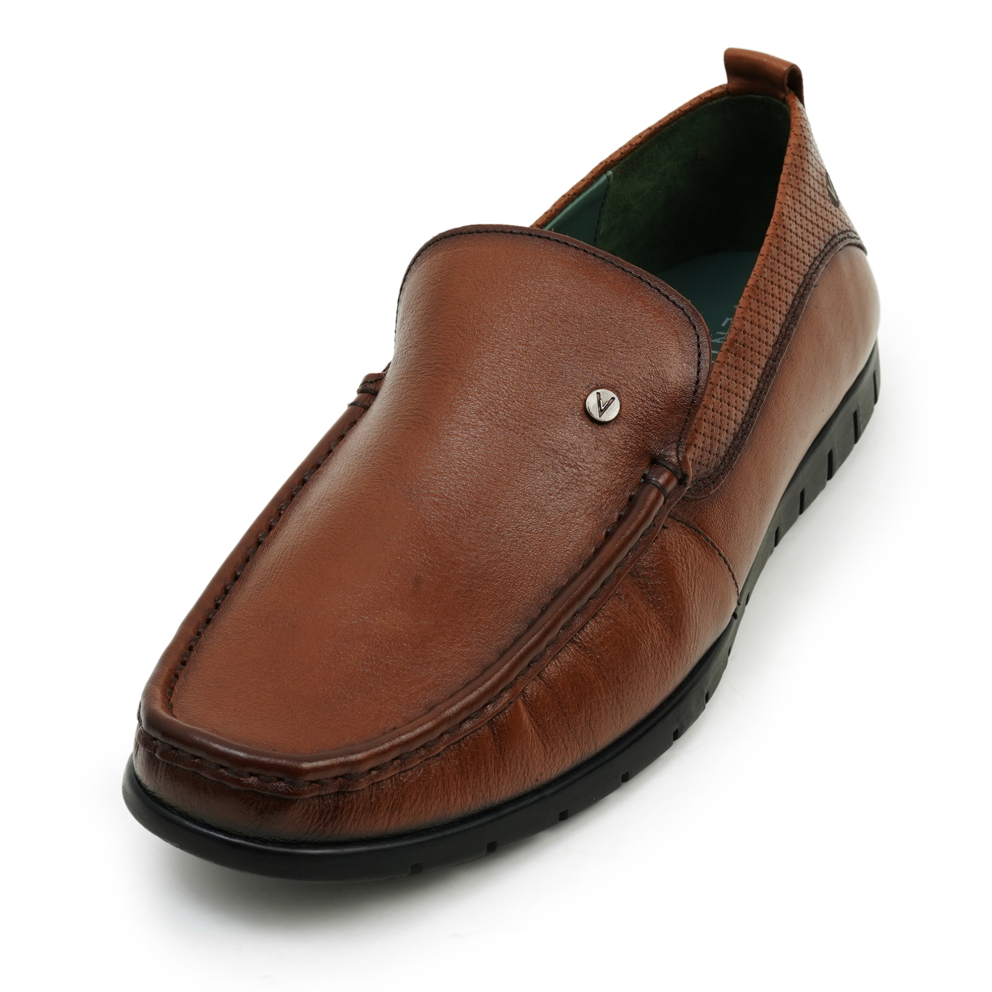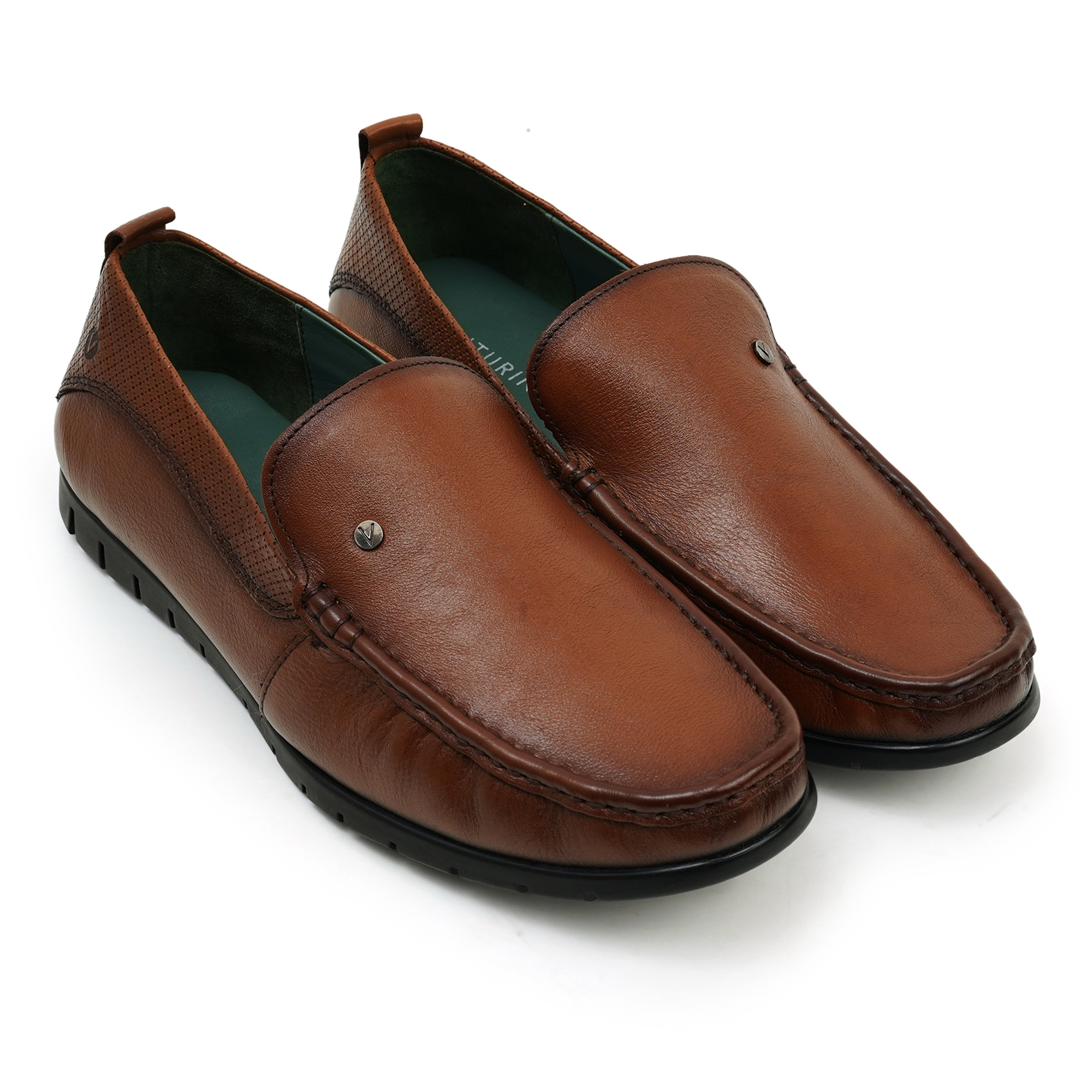 Venturini's refined brown leather slip-on pairs understated elegance with everyday practicality. Crafted from premium leather, this laceless silhouette delivers a sleek, streamlined profile with subtle tonal stitching and textured side panels for added depth. The softly cushioned insole and flexible rubber outsole ensure graceful comfort from morning meetings to weekend getaways. Inside, a rich, contrasting lining enhances the tactile experience, while the timeless design makes it a versatile staple for both smart-casual and business-casual wardrobes