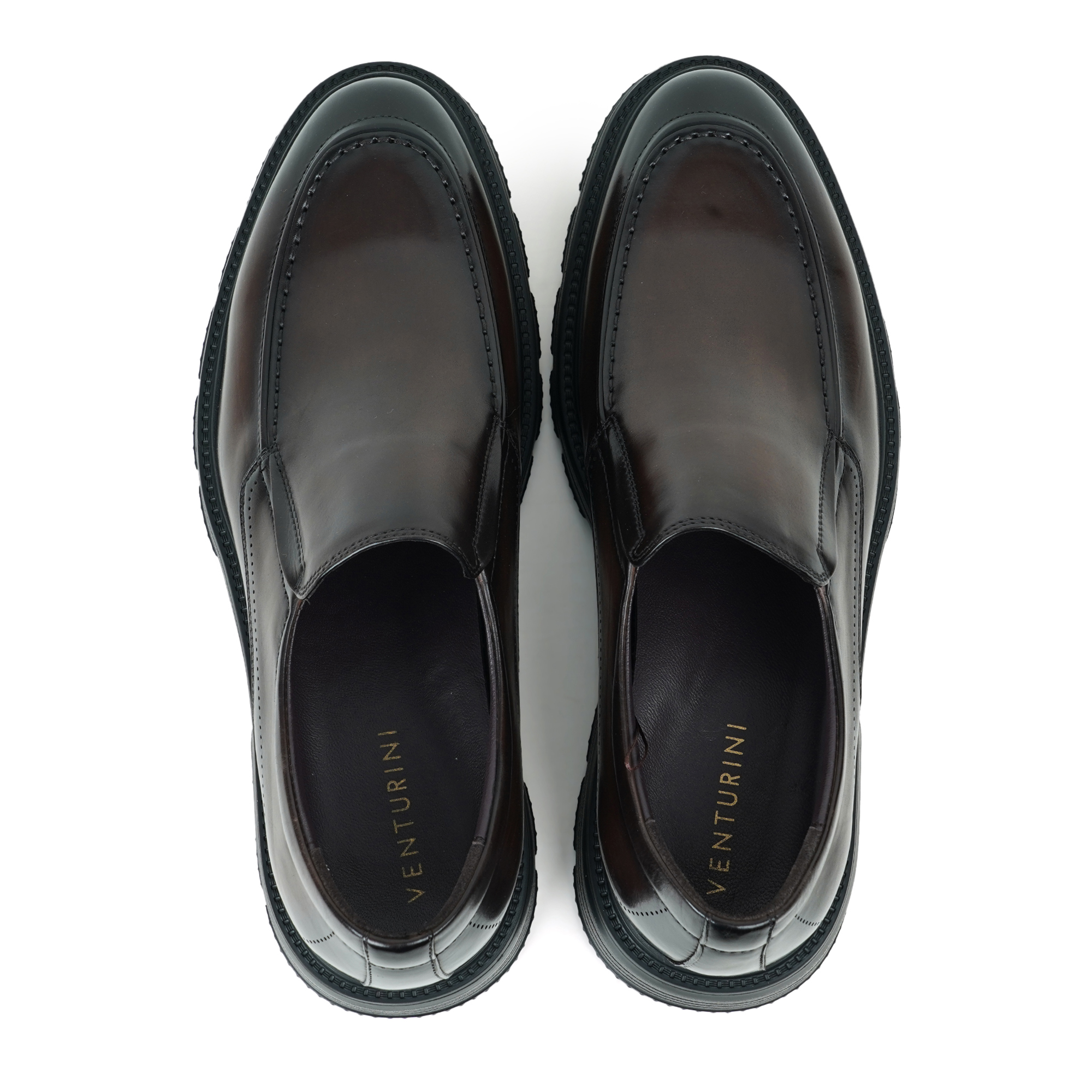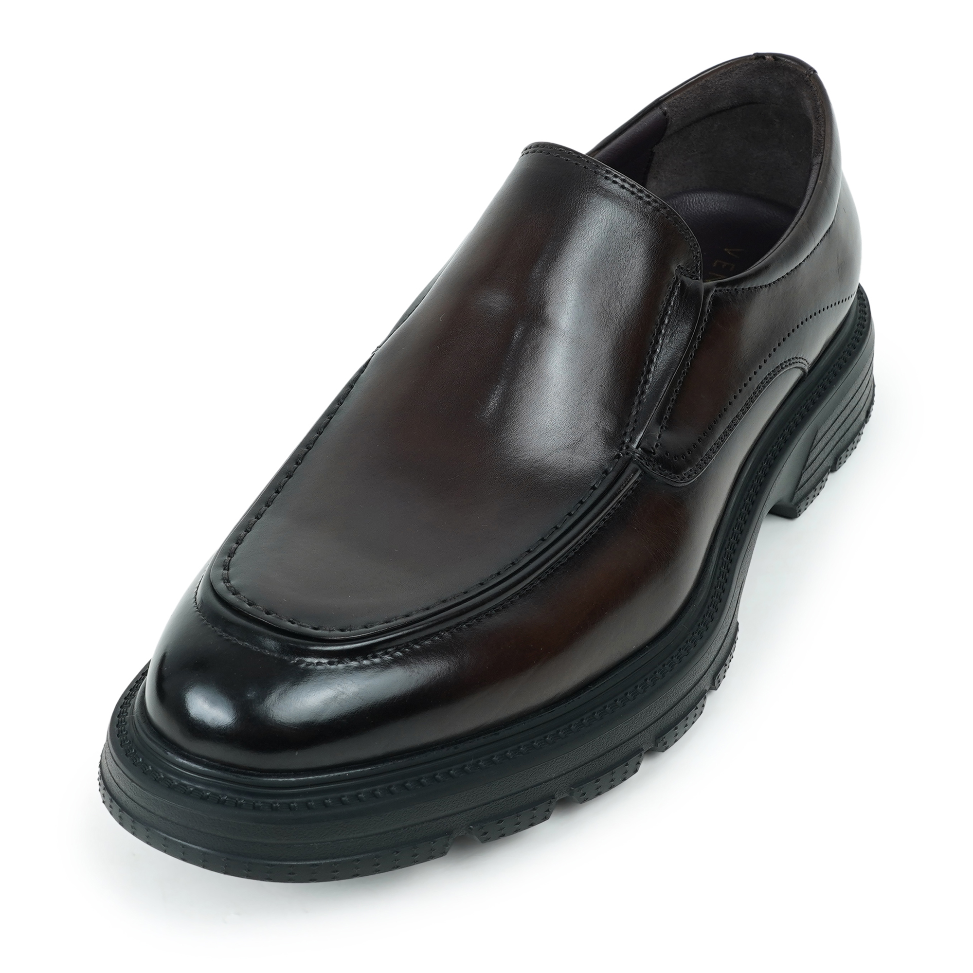 Crafted from velvety coffee-toned leather, Venturini Men's Dress Shoe slips on in seconds yet stays locked in place thanks to hidden stretch gores. Beneath the refined upper, a foam-cored EVA sole whispers comfort with every stride, turning marble lobbies and airport terminals into easy terrain.
