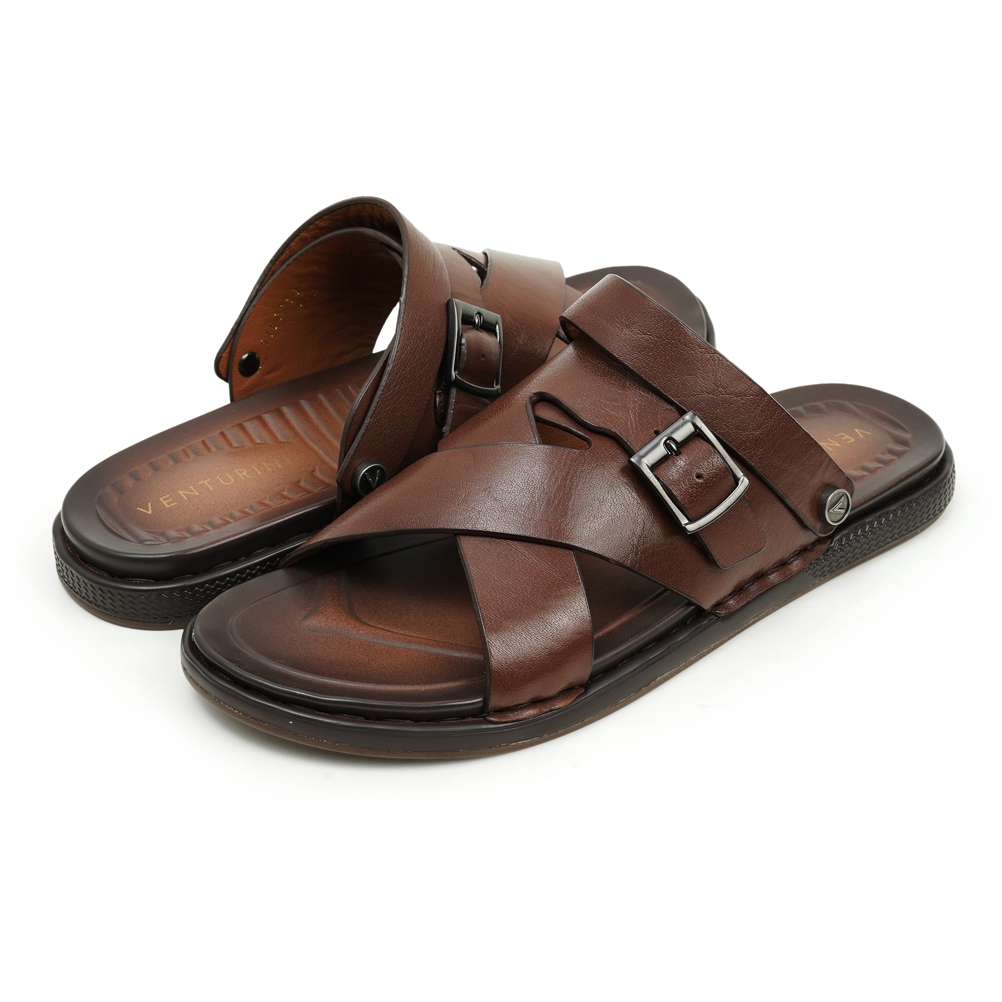 Classic never looked or felt this good. Venturini’s Men's Leather Sandal in Coffee Classic Buckle Slide wraps feet in supple leather and rests them on a cloud-soft insole, all atop a feather-light PU base built to go the distance.