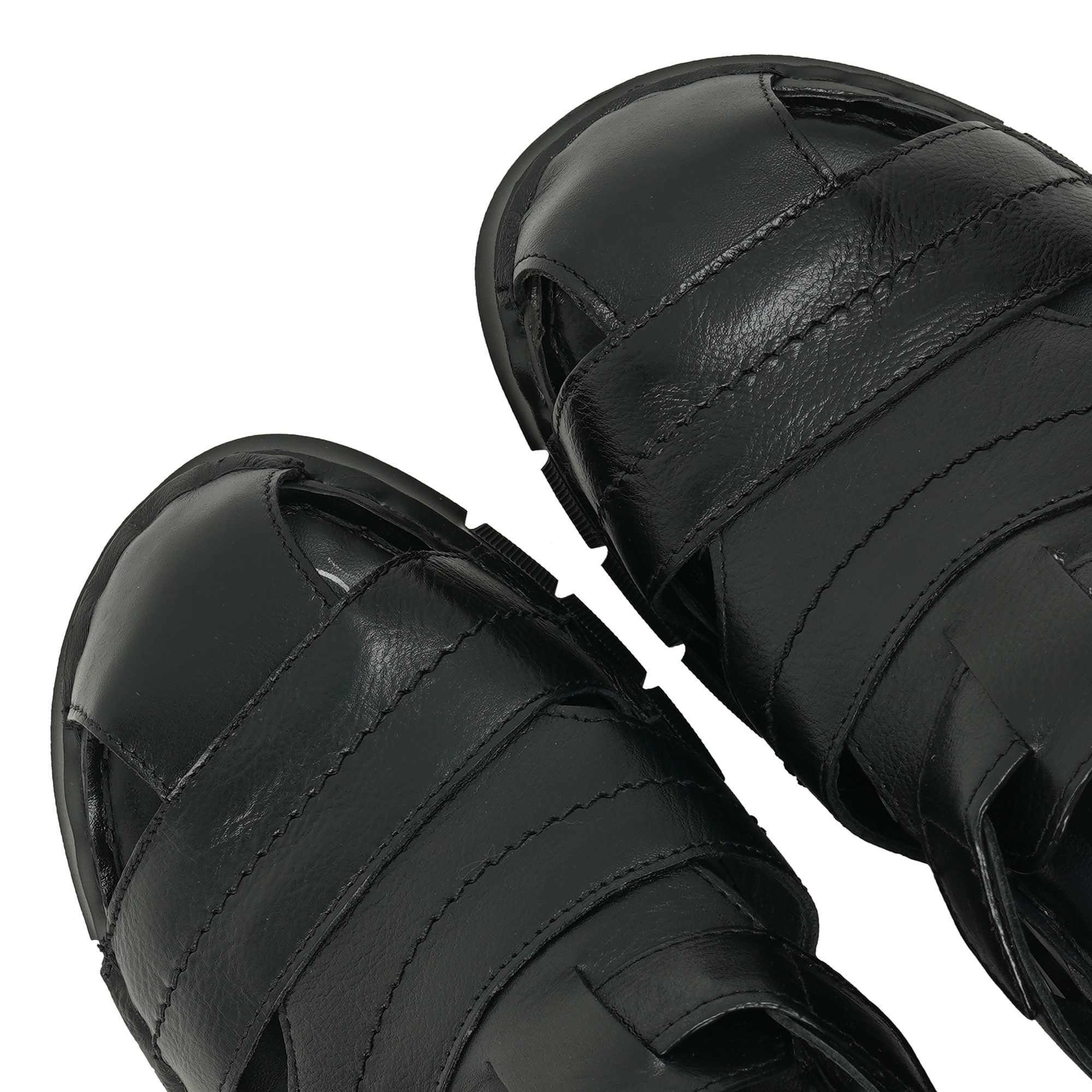 - Black leather, durable upper with breathable panels