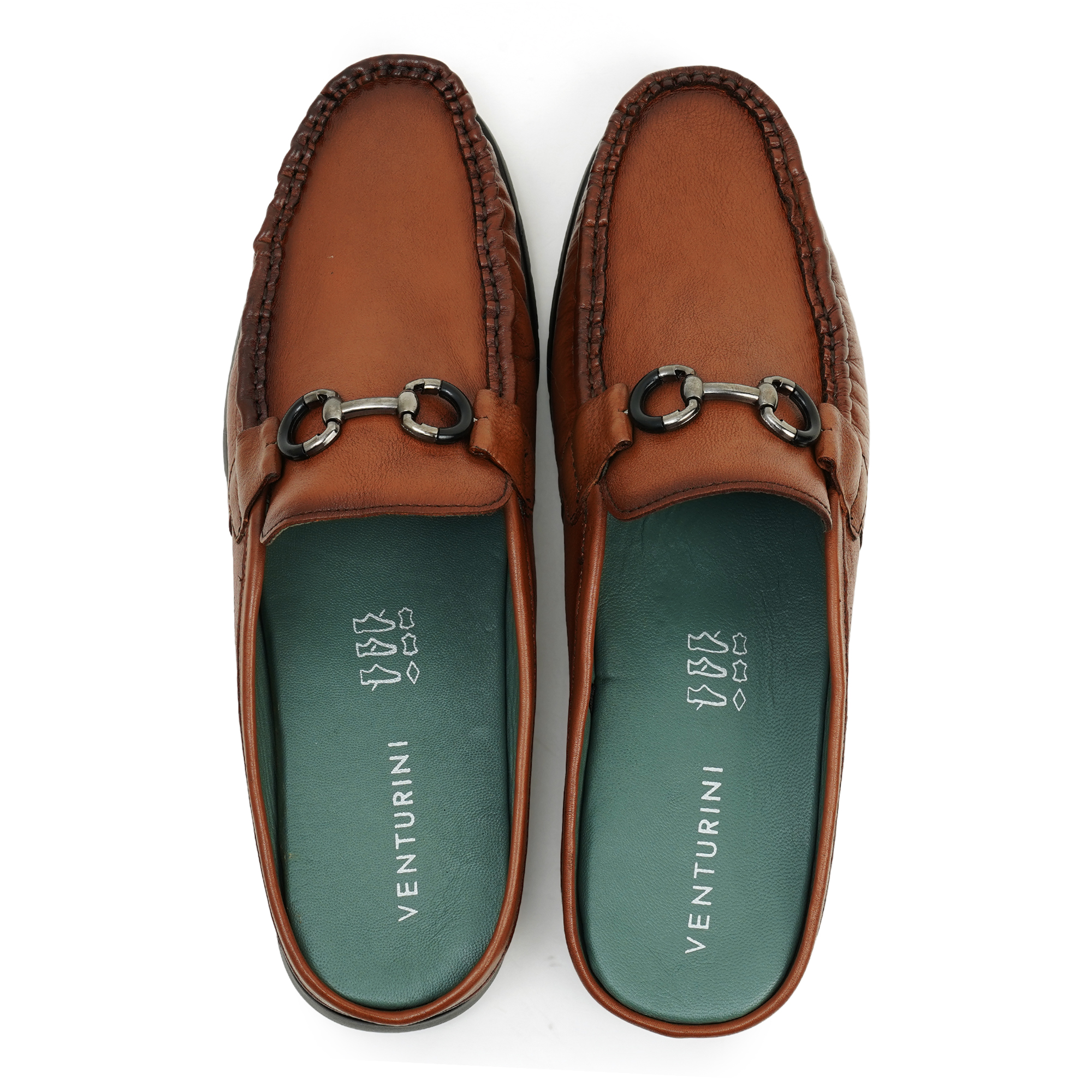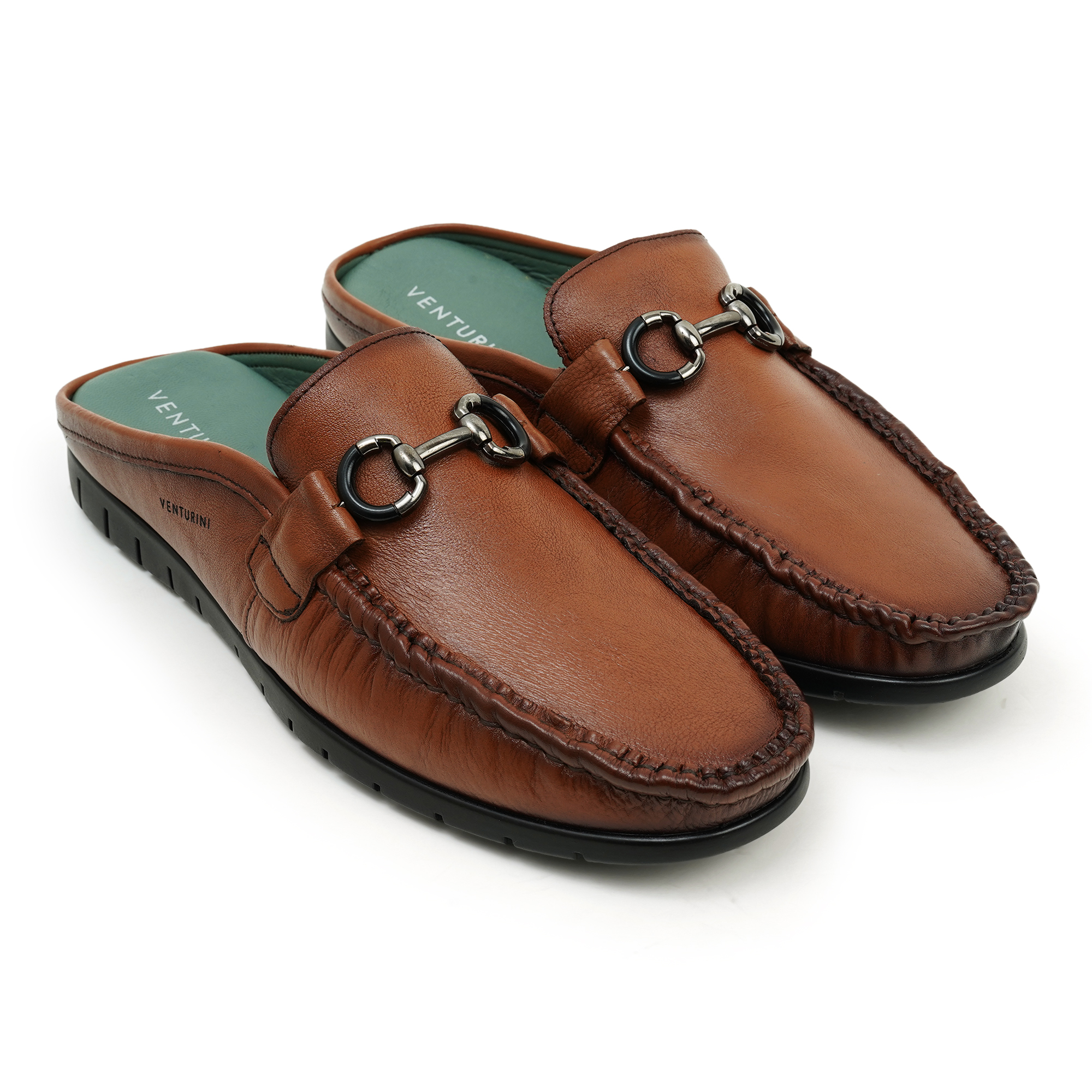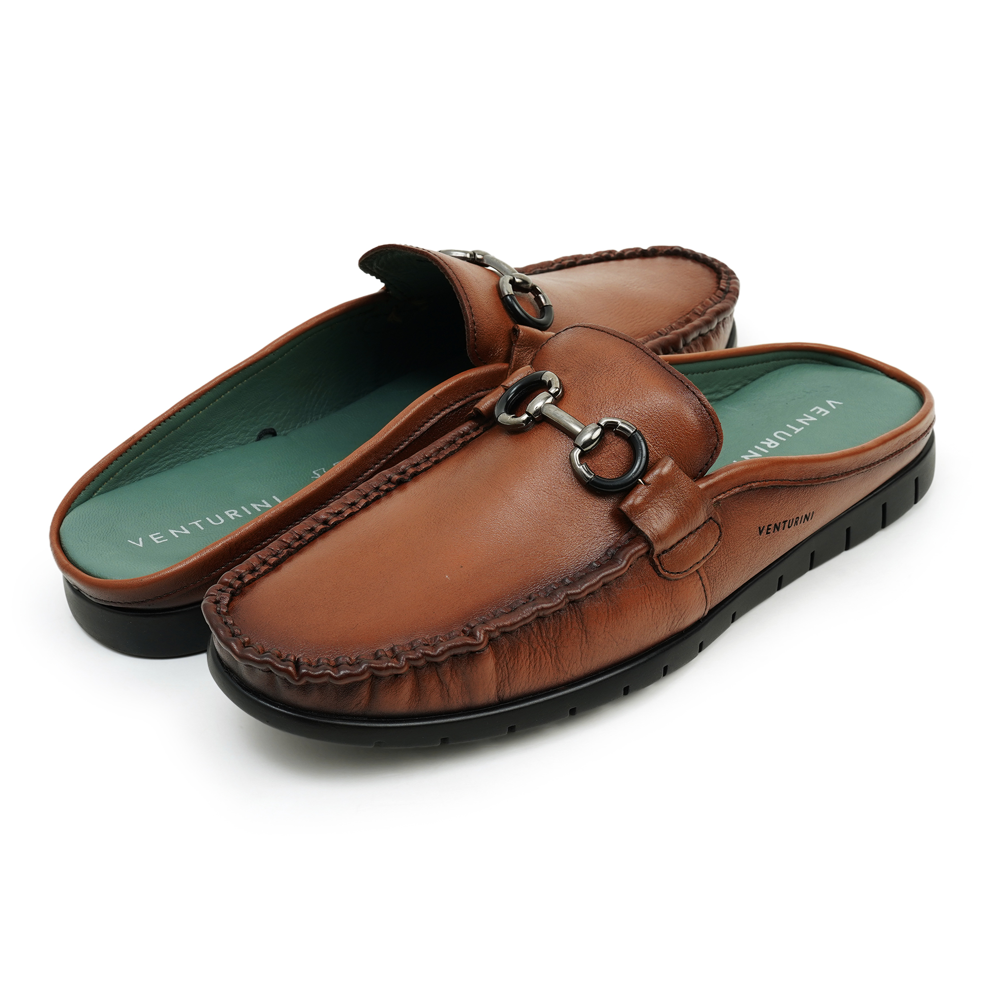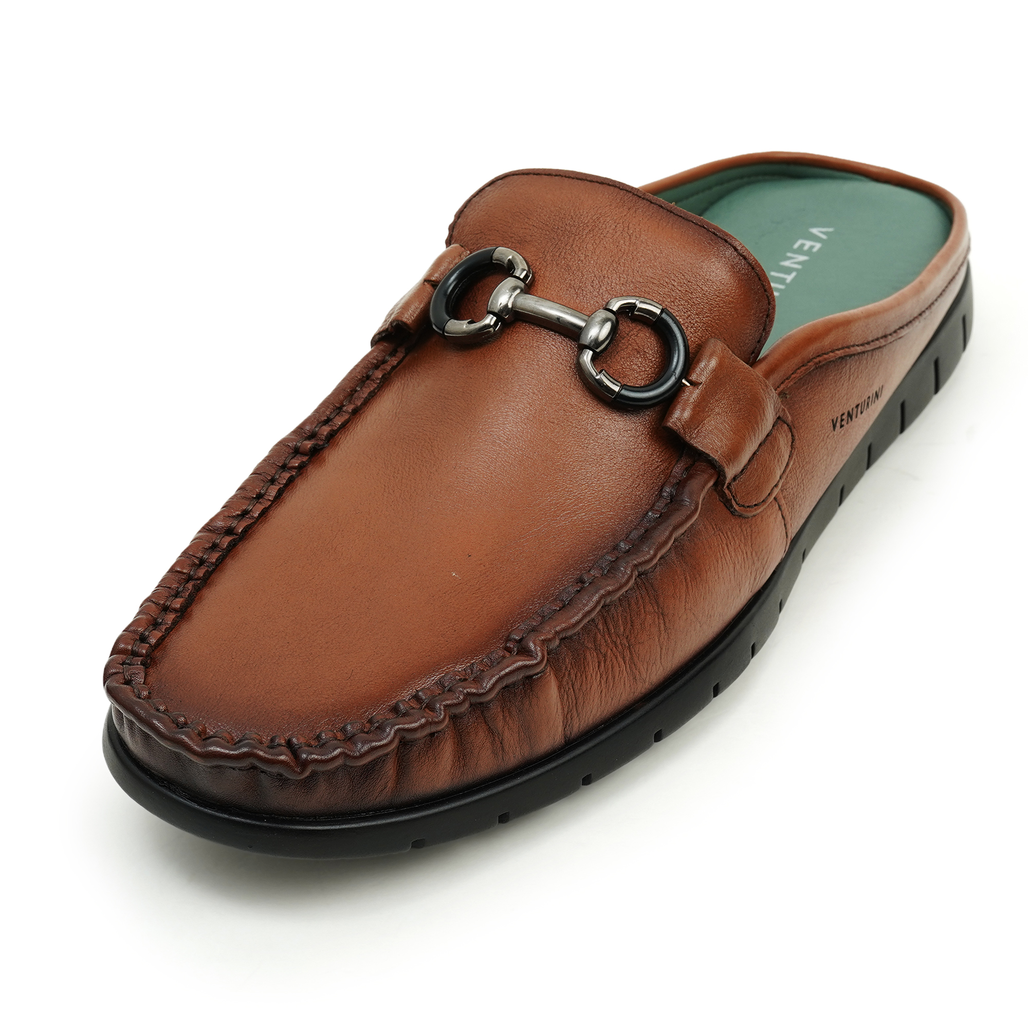 Venturini men’s brown leather mule sandal blends classic craftsmanship with modern comfort. Crafted from genuine leather, these slip-on sandals feature a sleek, stitched silhouette and a signature metal horsebit-inspired buckle for a refined, timeless look. The plush teal footbed provides all-day comfort, while the textured outsole delivers reliable grip. Perfect for casual days, travel or relaxed workwear, Venturini offers style, durability and wearability in one versatile sandal.