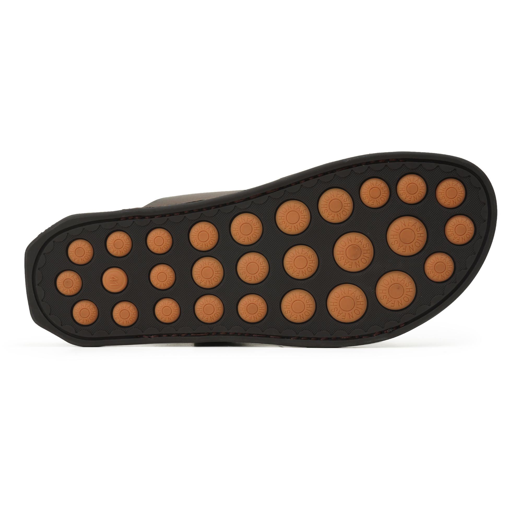 - Rich brown leather-look upper