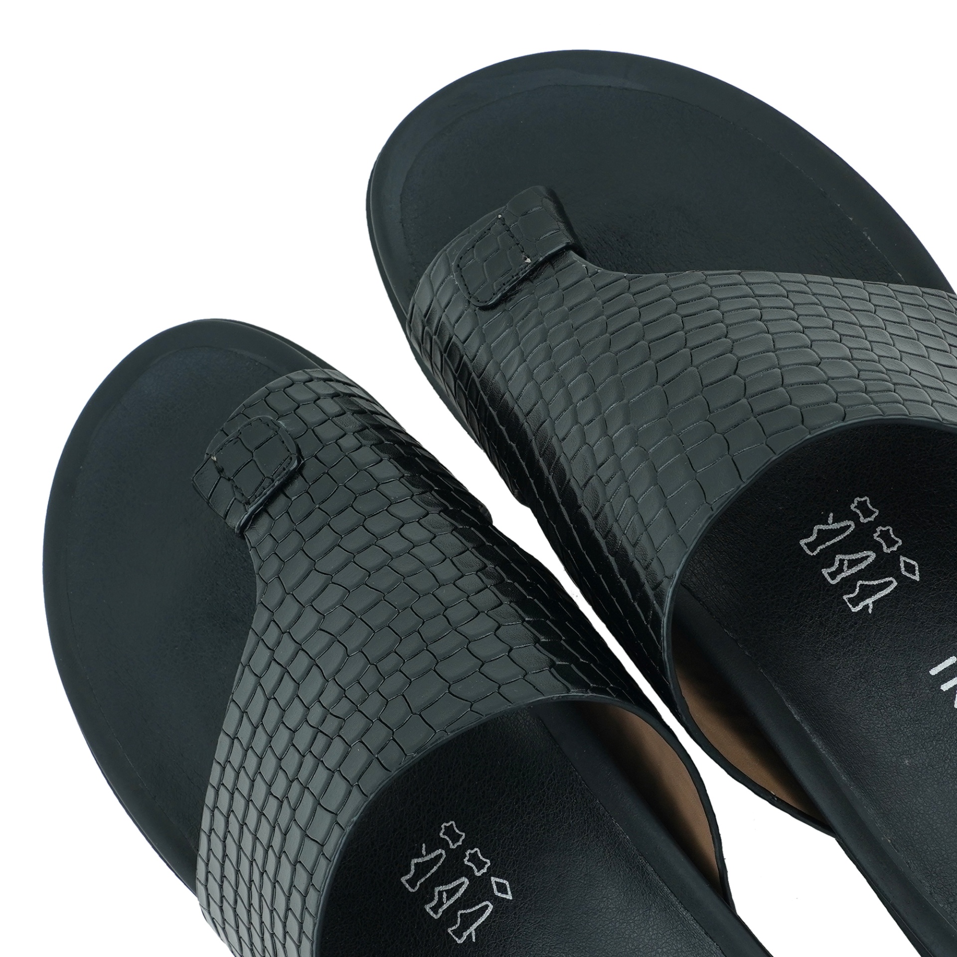 Venturini Men’s Toe-Ring Sandal combines everyday comfort with subtle style. Made with a leather upper featuring a snakeskin-like pattern, it adds texture while remaining durable and breathable. The toe-ring design offers a secure fit, and the rubber sole provides reliable grip and support for relaxed days or casual outings. Practical yet stylish, this sandal is ideal for men seeking comfort without compromising on a modern, textured look.