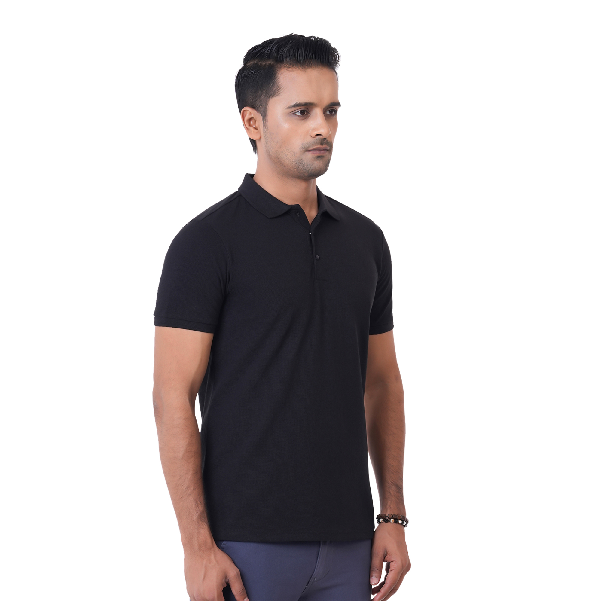 Maverick Men's Polo T-shirt offers a clean, solid color look with a classic polo collar and front button placket. Made from breathable cotton, this tee features ribbed half sleeves for a neat finish. Ideal for casual hangouts or semi-formal scenes where comfort meets quiet confidence.